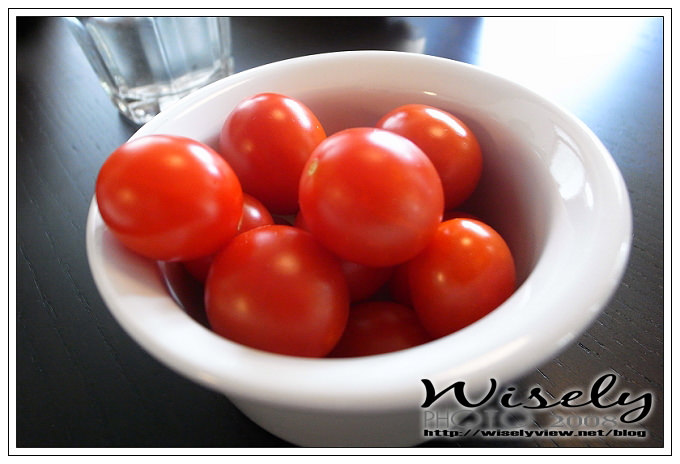 飯前水果鮮紅的小蕃茄,雖然只是一小盤的水果,但看起來就很誘人。