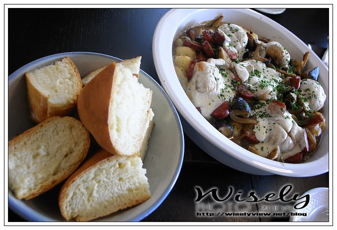 而店家也提醒我們,焗烤裡的醬汁可以用麵包沾著來品嚐,比一般塗抹奶油的口感更加美味!