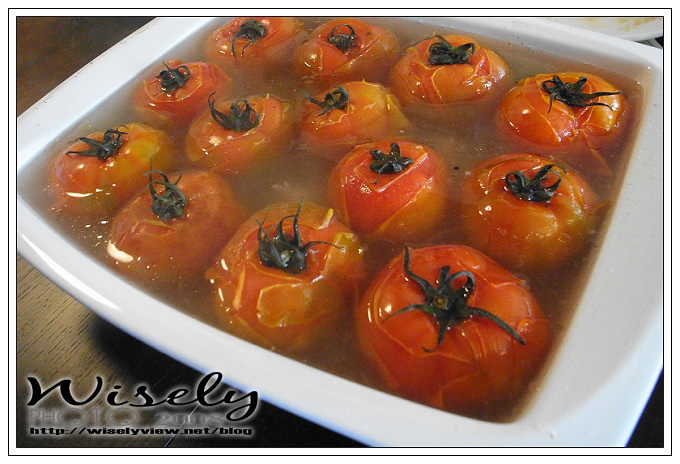 而它最不容易的便是將蕃茄完整地保留它的外型及鮮味,讓蕃茄的酸味全封在裡頭。
