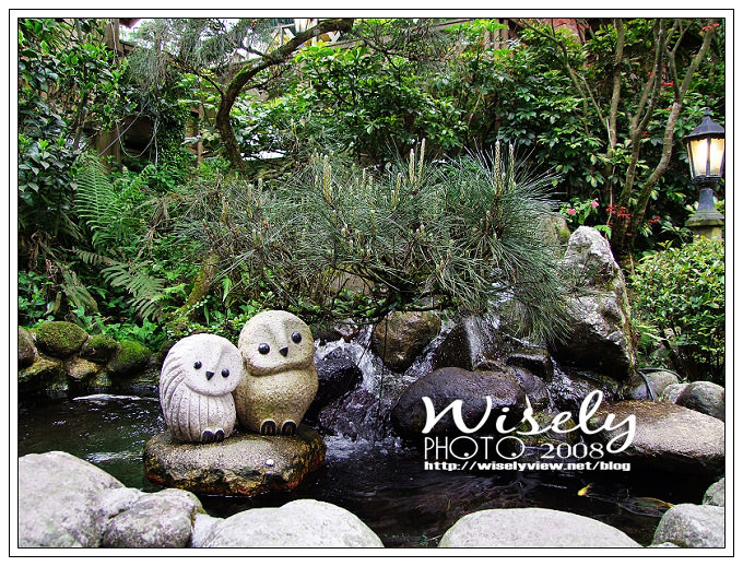 小巧可愛的鯉魚池,伴著一對的貓頭鷹,雖然看起來有點怪,但感覺還是很可愛。