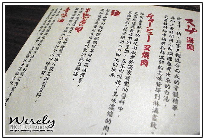 雖然Wisely比較偏愛吃道地的台灣牛肉麵,但是偶而試試和風拉麵其實也是不錯的!